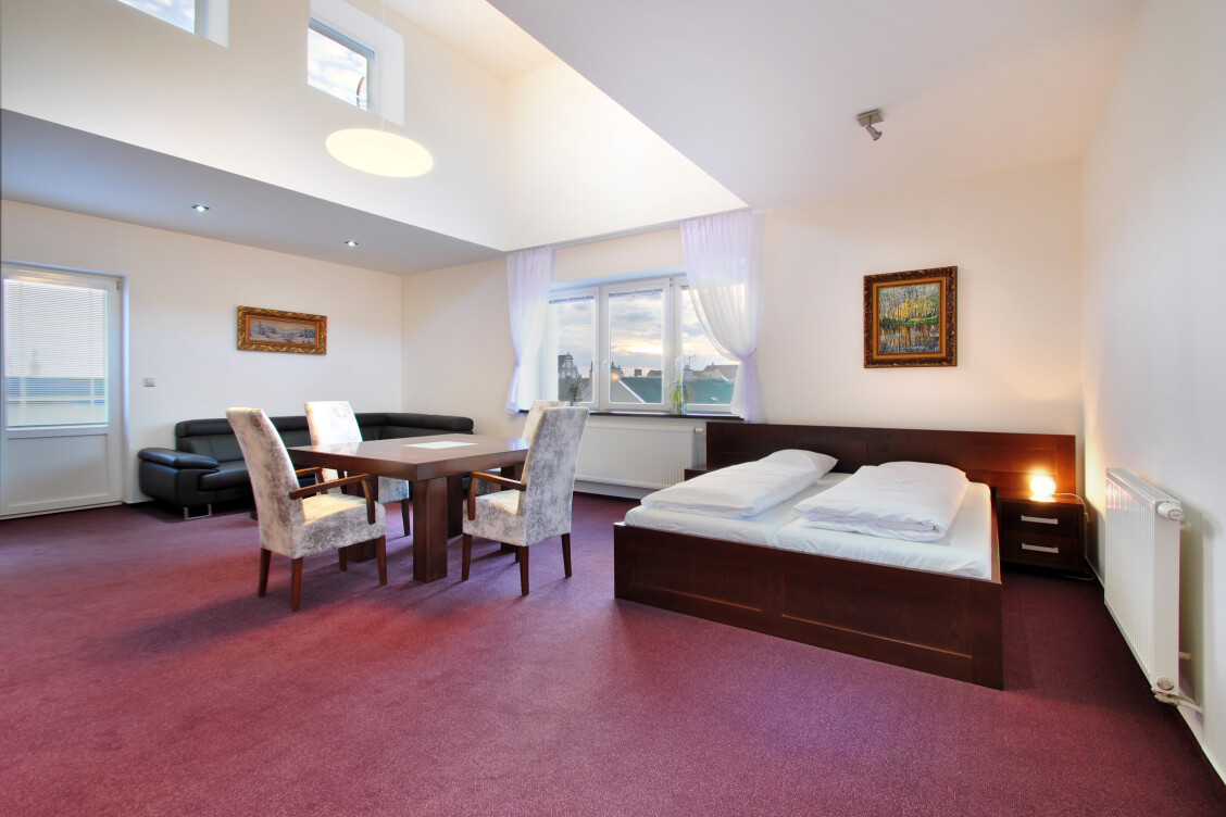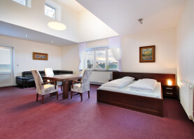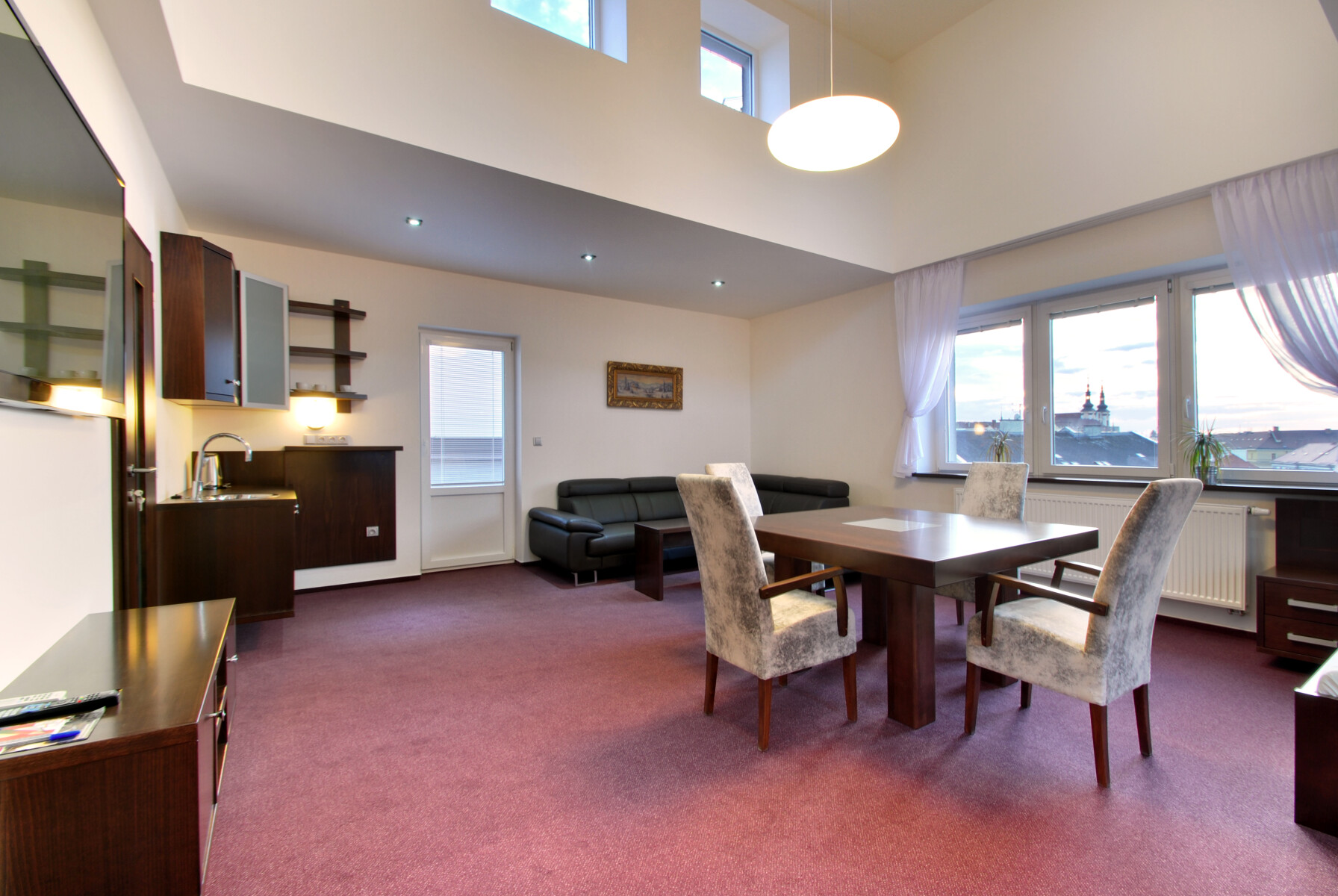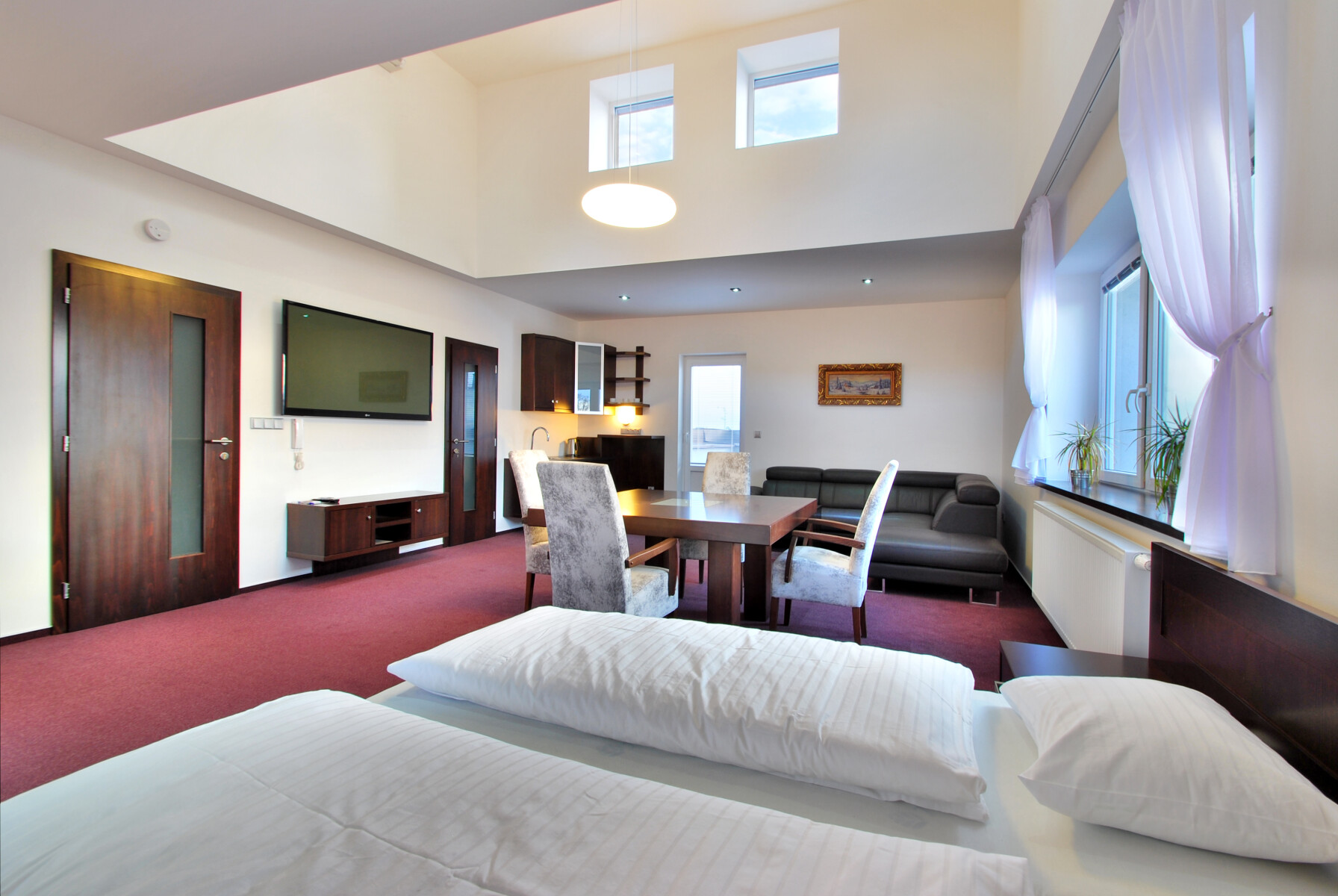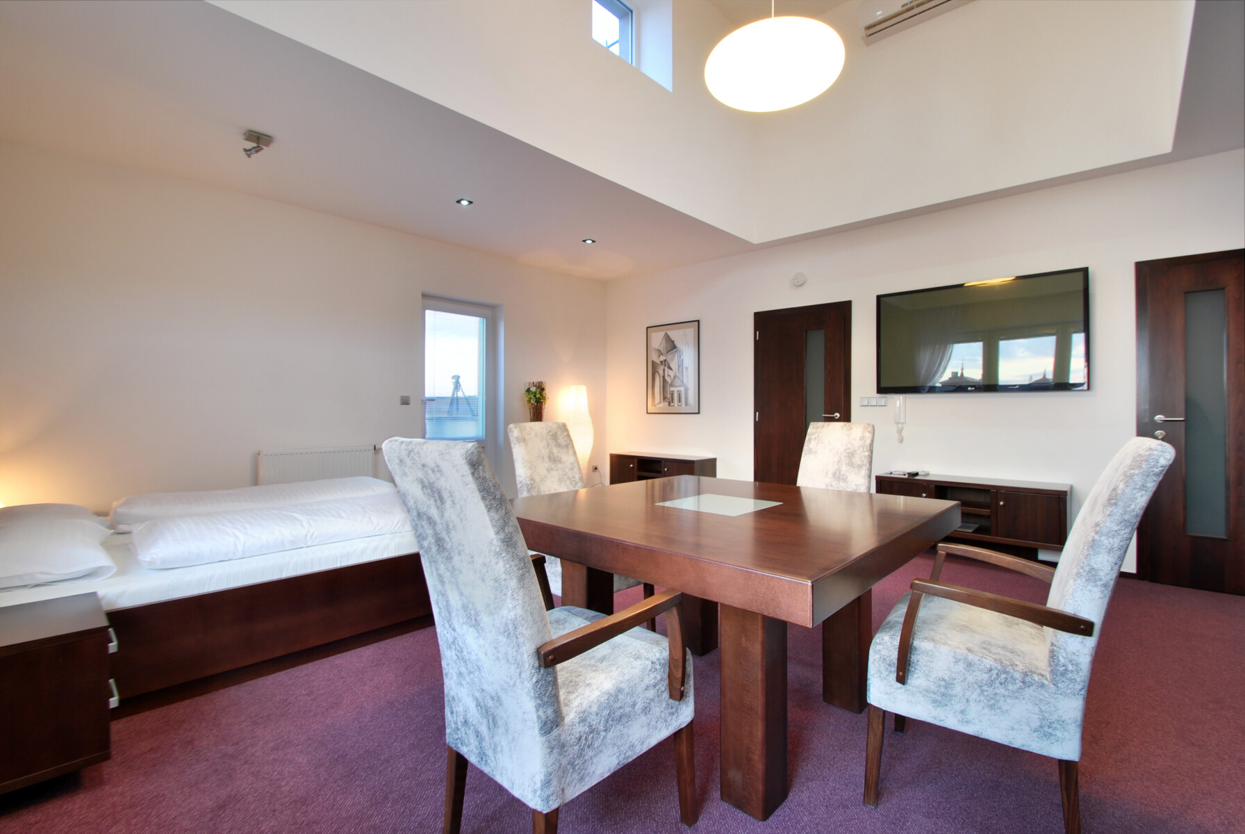 Hledáte romantiku nebo si jen chcete dopřát něco výjimečného? Náš exkluzivní apartmán, jediný svého druhu v hotelu, vás okouzlí svými střešními terasami, které nabízejí jedinečný výhled na panorama Olomouce. Je to ideální útočiště pro páry, které ocení soukromí a neopakovatelnou atmosféru přímo pod oblohou.