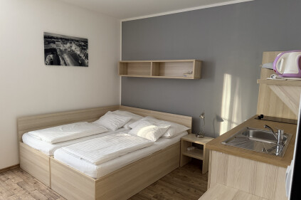 Útulný pokoj s komfortní manželskou postelí poskytuje ideální místo pro odpočinek a pohodový pobyt. Pokoj lze obsadit i jednou osobou za zvýhodněnou cenu.