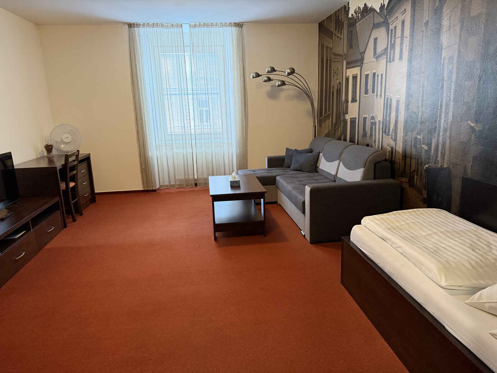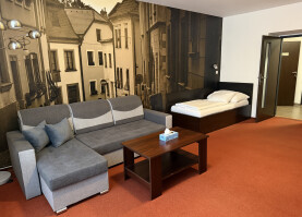 Prostorný apartmán nabízí pohodlné ubytování až pro tři osoby s dostatkem soukromí i společného prostoru.