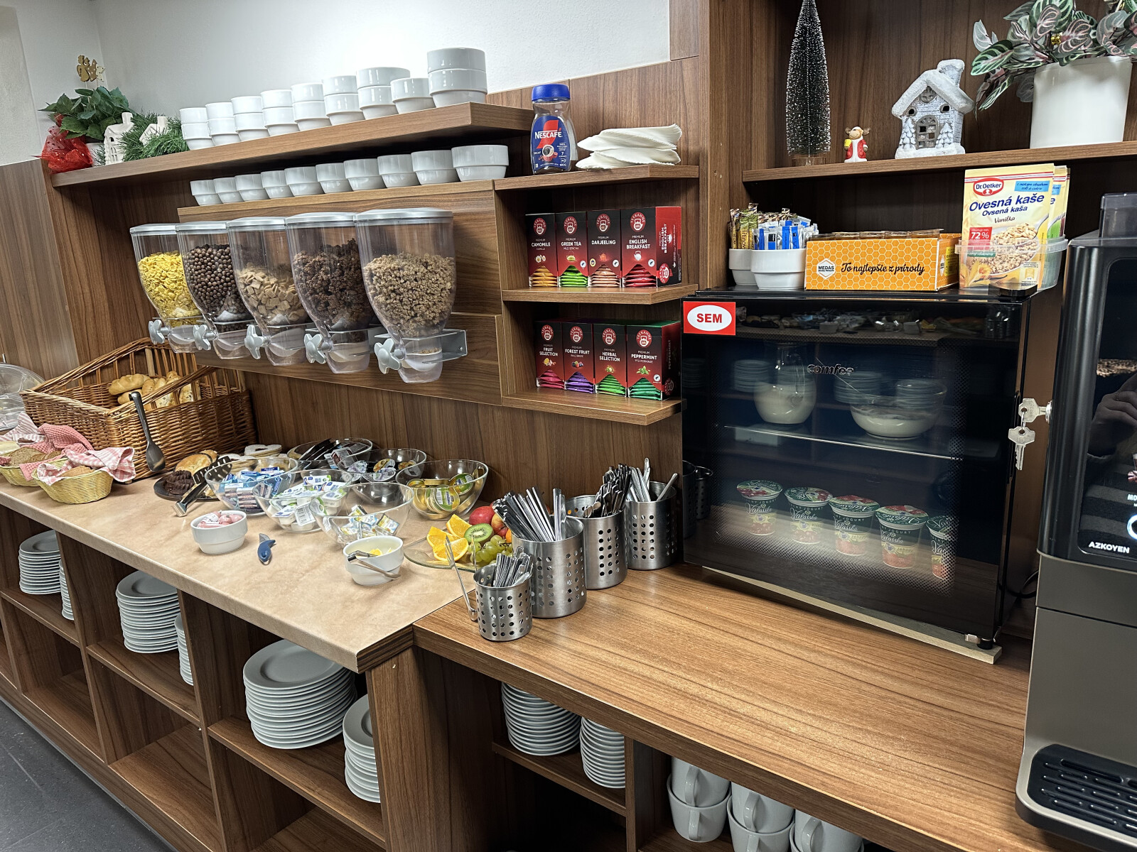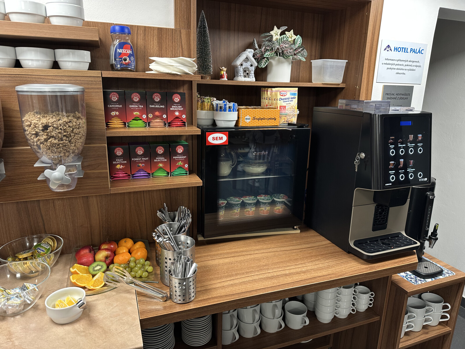 Křupavé pečivo, vůně čerstvé kávy a výběr toho nejlepšího pro sladké i slané jazýčky. Naše snídaně formou švédských stolů nabízí vše, co potřebujete pro načerpání energie – od vajíček a uzenin až po čerstvou zeleninu, jogurty a dezerty. Prohlédněte si naši galerii a těšte se na ráno v Hotelu Palác.